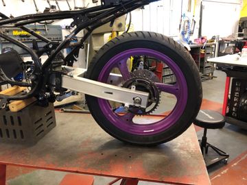 To modify the Honda Swing Arm, and fabricate and install the required suspension mounts and frame bracing into the YPVS frame to fit the Honda's suspension set up.