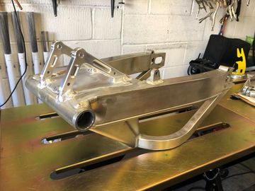 To modify the Reverse Cylinder Swing Arm, and fabricate and install the required suspension mounts and frame bracing into the YPVS frame to fit the TZR's suspension set up.